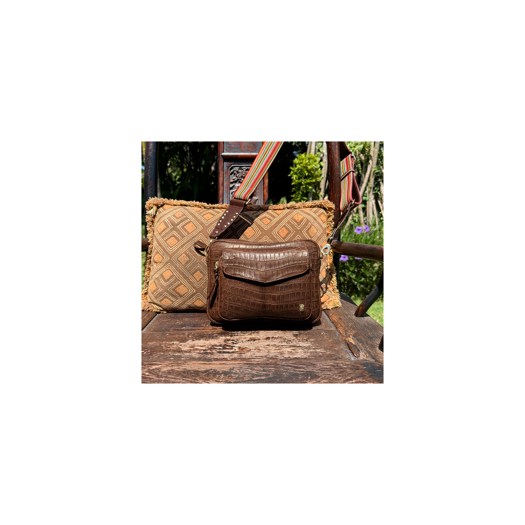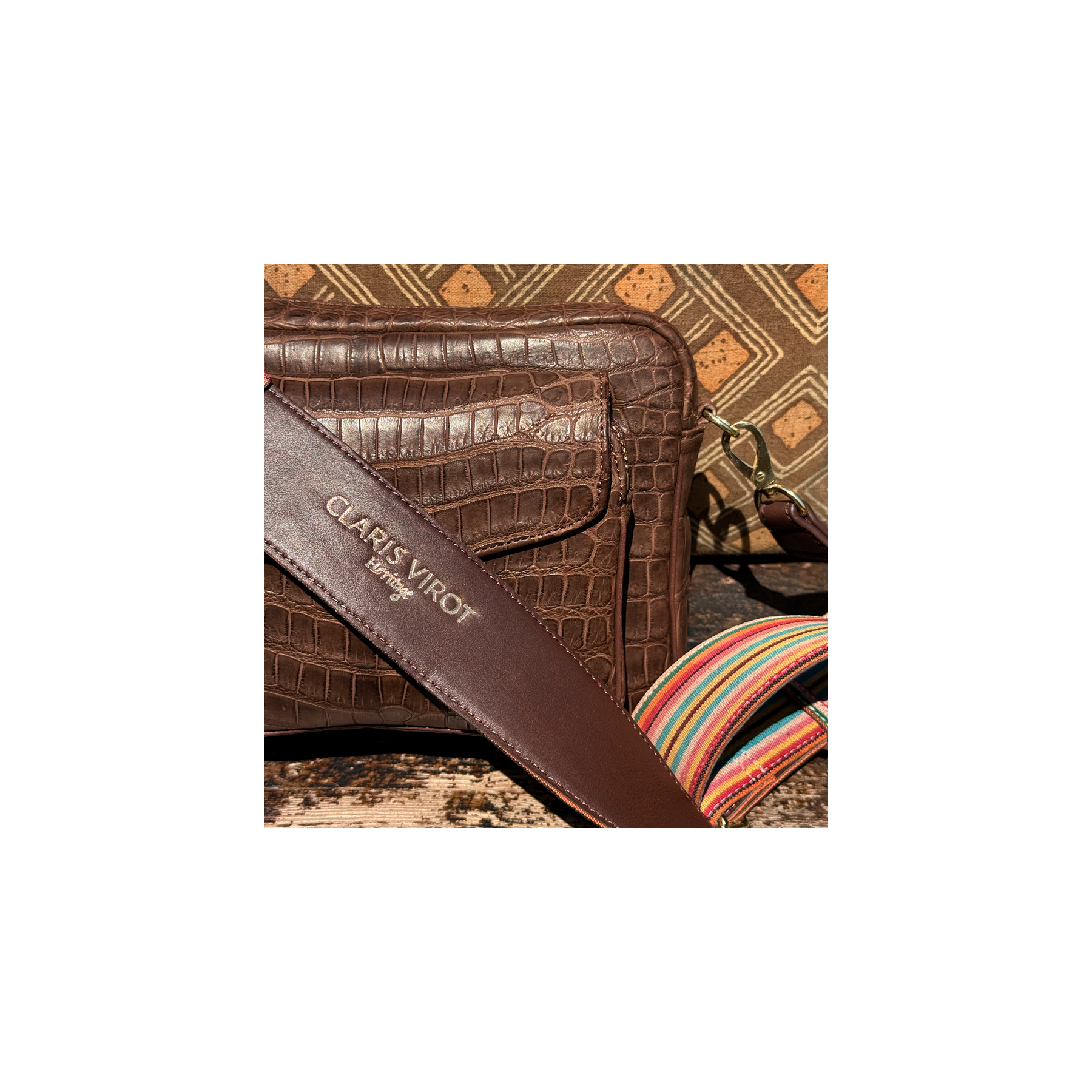 Chocolat genuine croco with antique fabric "Héritage" strap