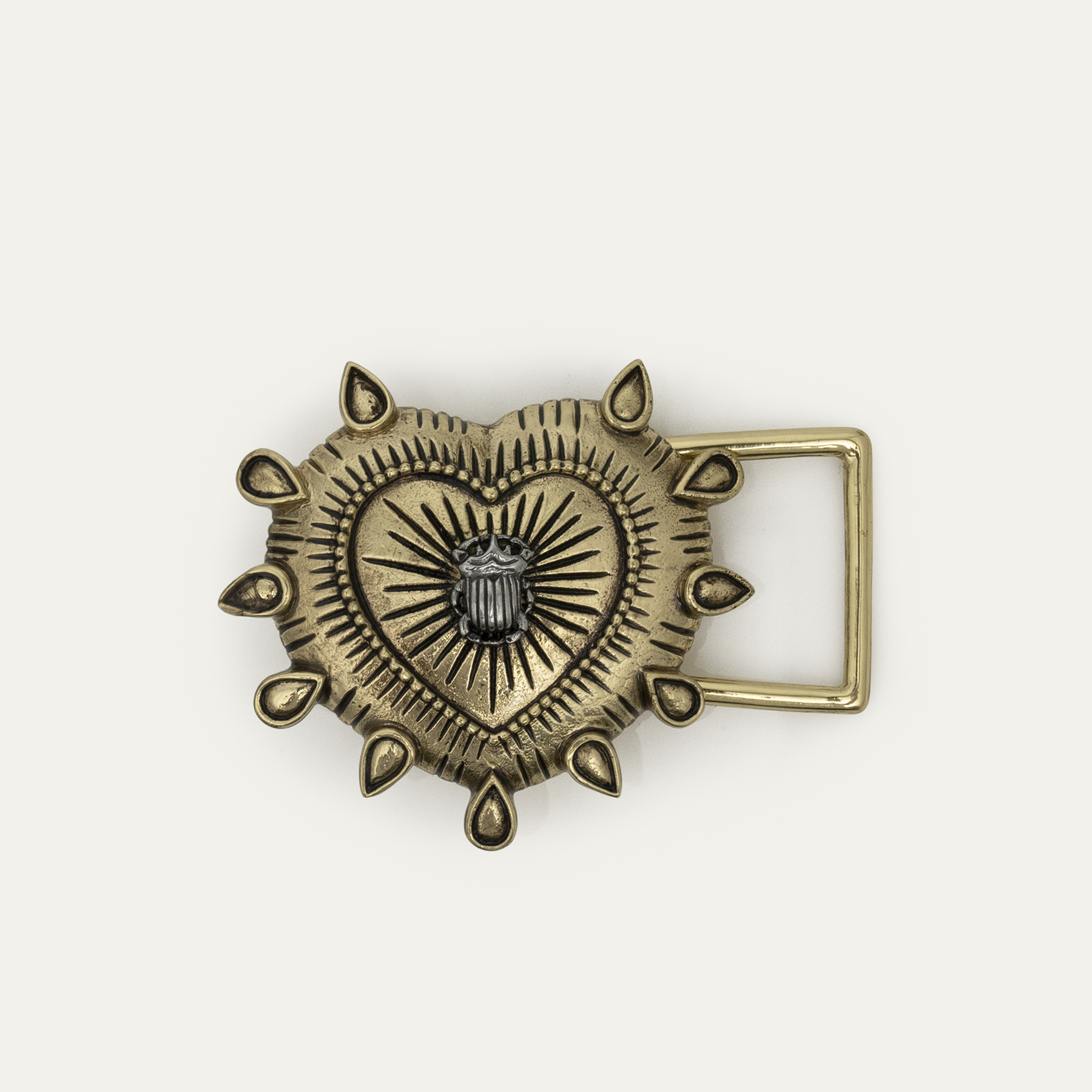 This slimmer leather-lined belt features a stunning brass buckle with an ex-voto centerpiece. It adds a distinctive touch to even the simplest outfits and pairs effortlessly with both jeans and dresses.