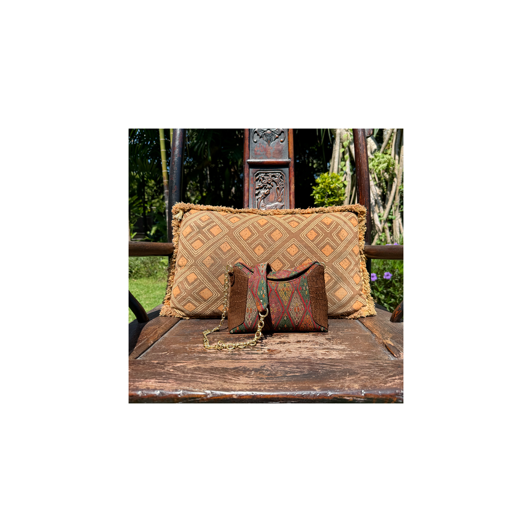 Exclusive antique handmade fabric "Héritage" and genuine brown croco