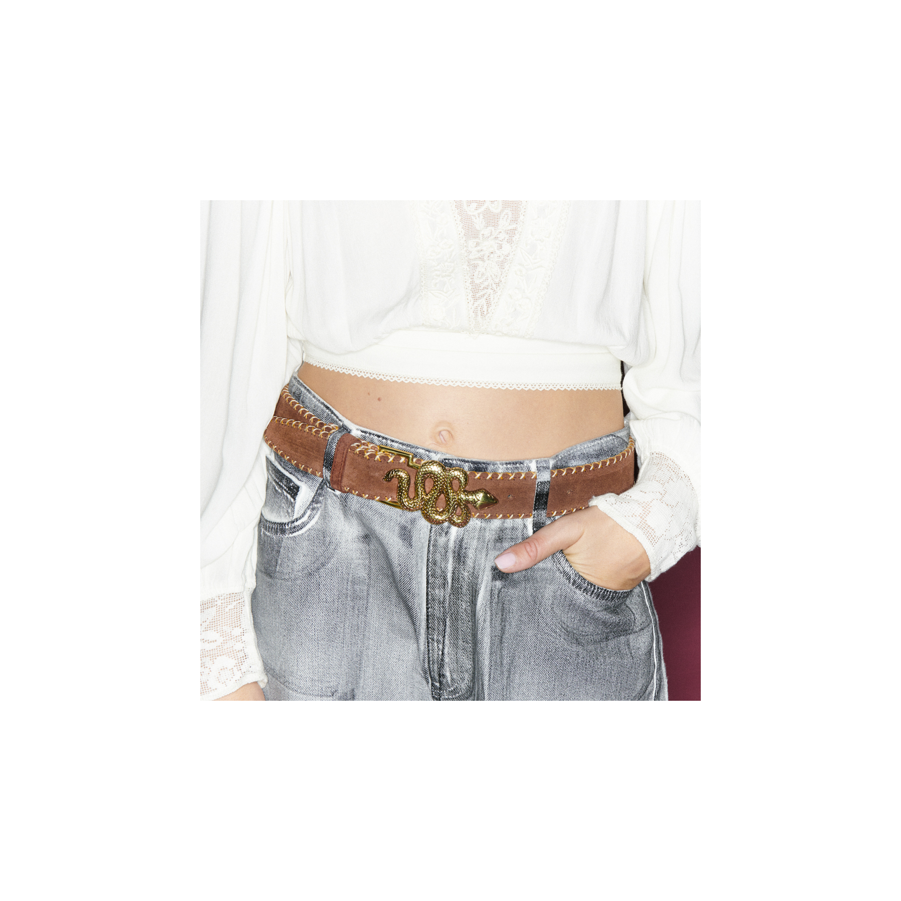 Cette boucle en forme de serpent se vend individuellement et est étudiée pour s'adaptr à nos ceintures afin que vous puissiez vous amusez à la porter sur différentes couleurs de cuirs