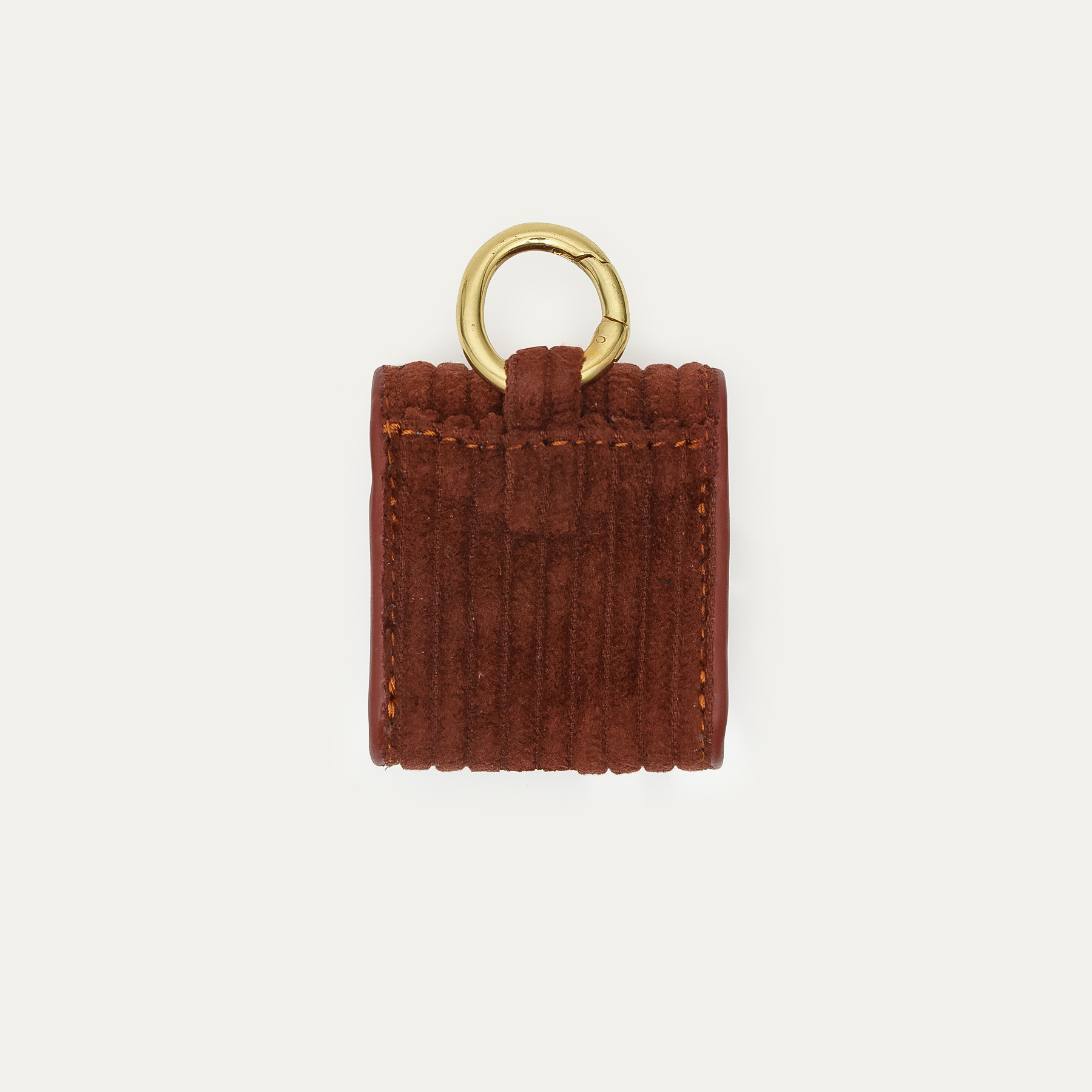 Notre premier étui à AirPods Jamie entièrement composé en nubuck et cuir embossé est orné d'une beetle dorée à l'avant. Son mousqueton vous permettra de l'accrocher aussi bien à vos passants de pantalon, qu'à votre sac ou étui de téléphone portable, tel que notre Double Marcus.