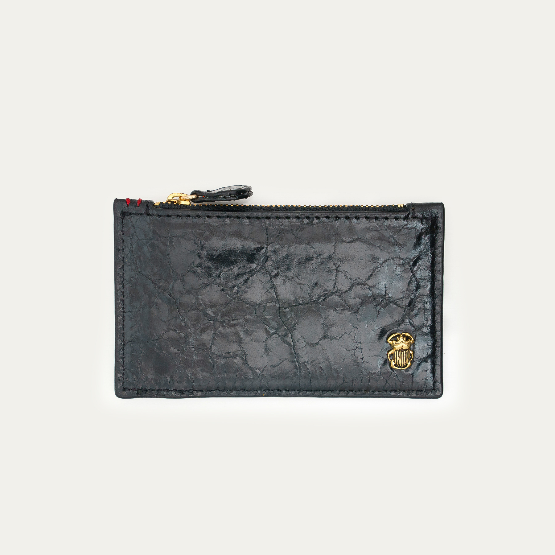 Notre porte-carte en python Héléna est doté de deux compartiments. Vos cartes trouveront leur place dans les fentes prévues à cet effet. Votre monnaie, quant à elle, pourra être rangée dans la pochette principale zippée.