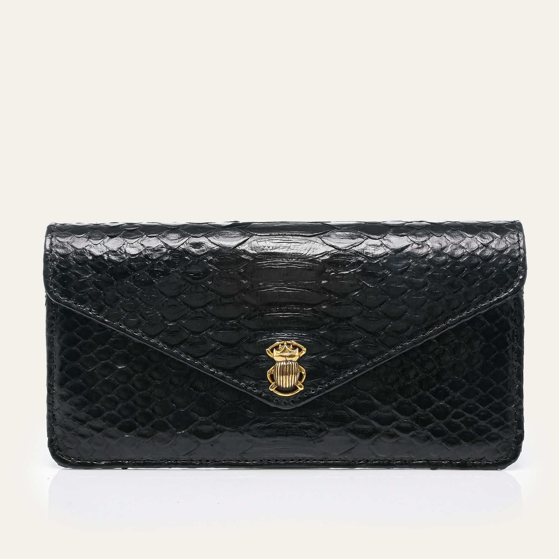 Découvrez tous nos portefeuilles ou porte-monnaie en python, cuir, lézard et croco faits à la main. Pratiques et ingénieux, ils peuvent être ornés d’un petit bijou en forme d'animal totem en laiton : scarabée, tortue, cauri, grenouille, serpent…