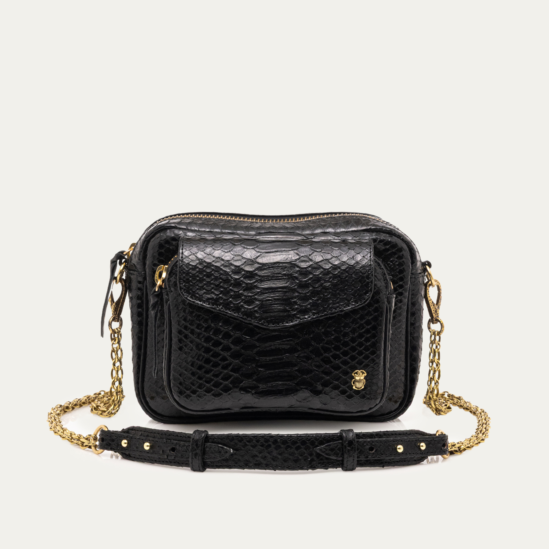 Tendance et indémodable, le cuir de python est l'une des matières fétiches de Claris Virot, qui offre une large gamme de produits à des prix défiants toute concurrence. Sa peau fine et souple présente des écailles qui peuvent se traiter de différentes façons : imprimé, lisse ou encore peinte à la main. À savoir ; les écailles ventrales sont plus larges que les écailles dorsales. Néanmoins, les peaux précieuses sont naturelles et susceptibles de patiner. La couleur peut donc être amenée à varier au fil du temps. Notre collection de sacs en python a entièrement été confectionnée à la main, dans nos ateliers.