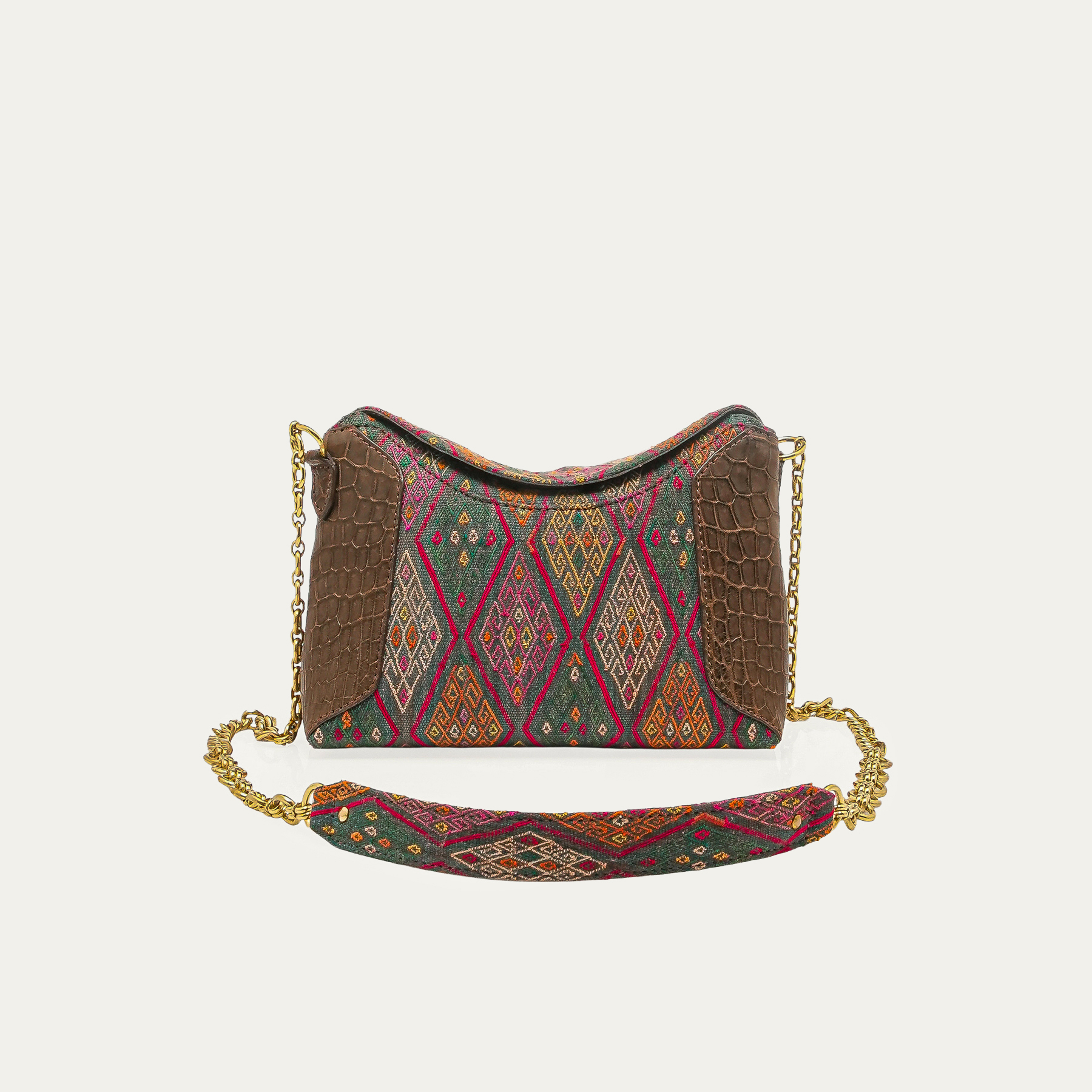 Tissu exclusif ancien "Héritage" fait main et Croco véritable marron
