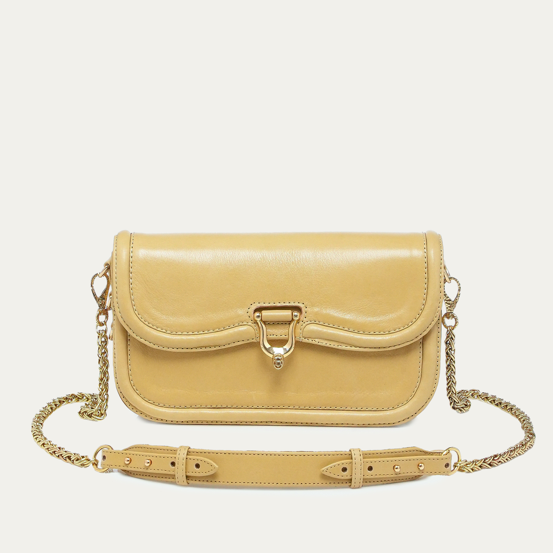 Notre sac MANON BAGUETTE, décliné du Manon est idéal pour accompagner vos sorties. Ce sac portée avec une bandoulière de manière croisée est doté d'un fermoir bijou.